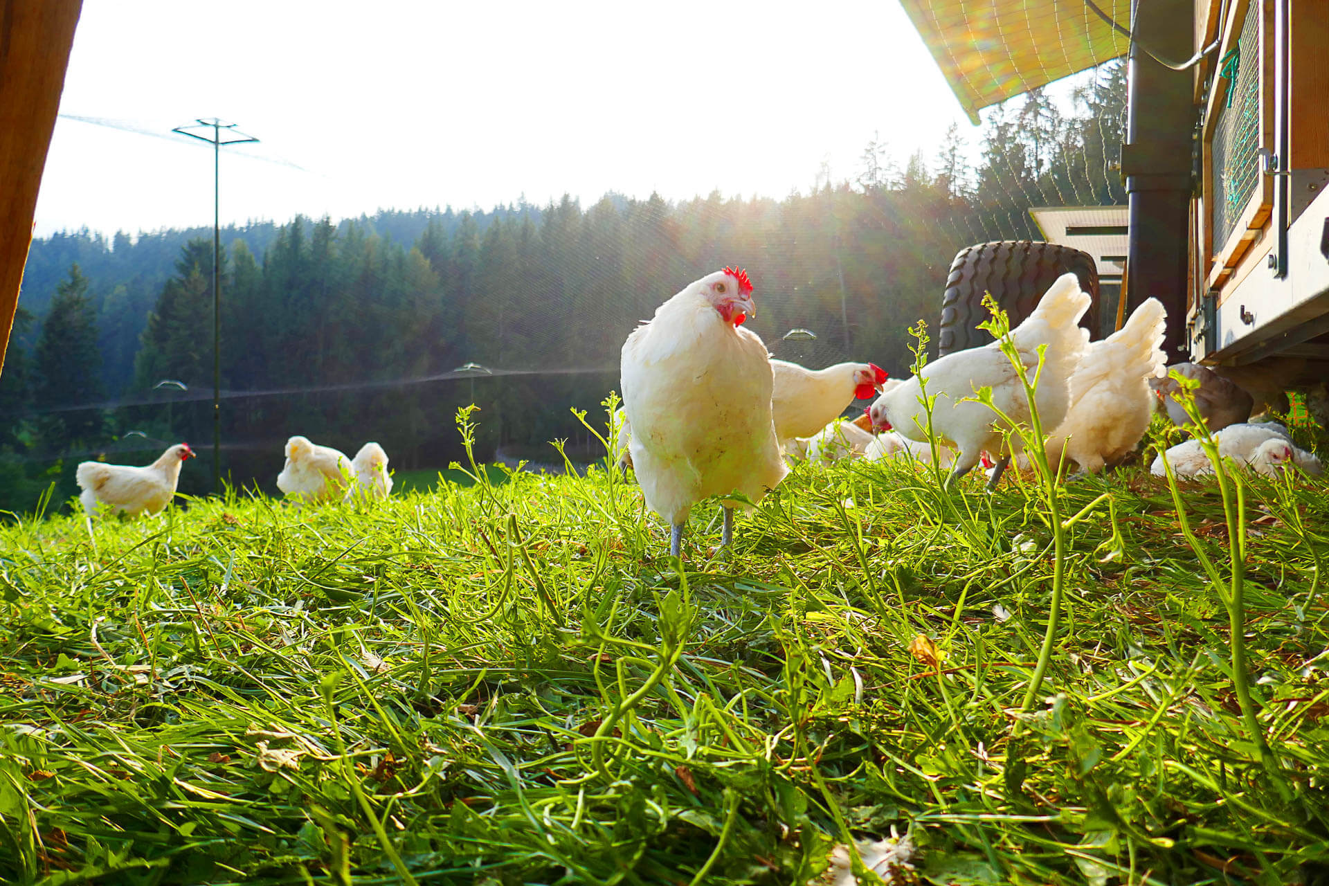 Auf der Suche nach einer neuen Perspektive in der biologischen Landwirtschaft haben wir uns mit der vollmobilen Freilandhaltung für einen innovativen Weg entschieden. Die Inspiration kam aus Bayern. Dort haben wir das Hühnermobil entdeckt und es war „Liebe auf den ersten Blick“! Der aus Lärchenholz gefertigte Stall auf Rädern und mit Satteldach fügt sich hervorragend ins Landschaftsbild ein und ist der Erste in Südtirol!